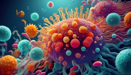 Zooming in on micro organisms. Microscopic view of living organisms in color.
