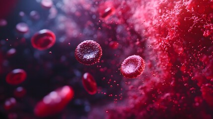 Red Blood Cell Microscopic View with Pink Fluid on Dark Crimson Background