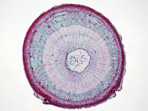 cross section cut slice of plant stem under the microscope – microscopic view of plant cells for botanic education