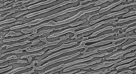 High-resolution electron microscopy image revealing the intricate, layered microstructure of a metallic alloy surface