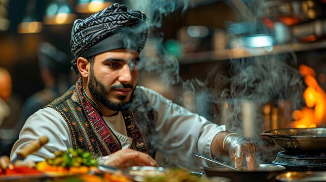 Middle Eastern Chef Concentrating In Professional Kitchen Images