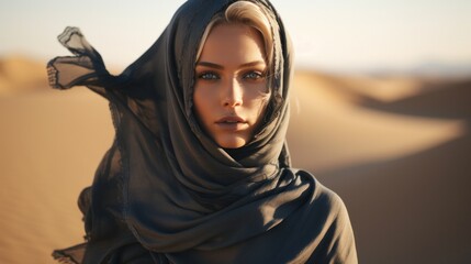 Beautiful arabic woman wearing veil in sandy desert Generative Ai illustration