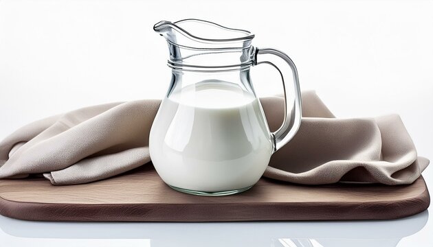 Glass carafe of fresh milk isolated on white