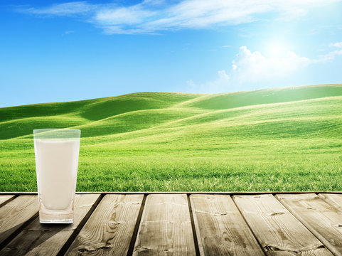 milk with cow on the background