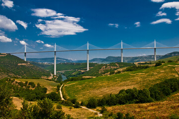 Viaduc de Millau vu depuis le Pont Vieux de Millau sur le Tarn en Aveyron, France