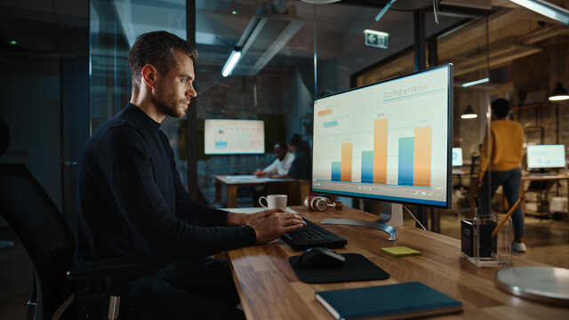 Creative millennial business group. Team leader communicating deadlines and sales goals to colleagues in modern openspace office.