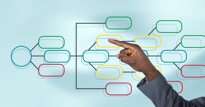 Hand and Colorful mind map over bright background