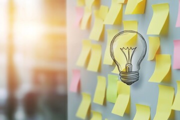 Idea Generation: Light Bulb on a Wall of Sticky Notes