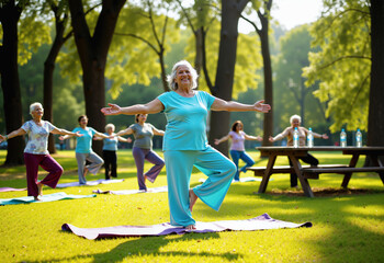 Elderly gentleman practicing mindfulness yoga in outdoor tranquil scene
