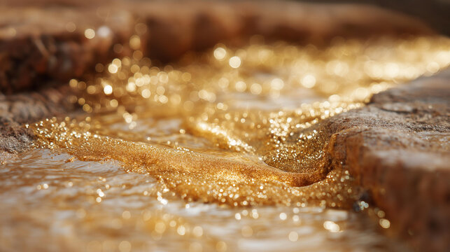 Golden minerals flowing on a mining belt, industrial efficiency in resource transport, supply chain dynamics in mineral processing, manufacturing innovation in mining tech, product