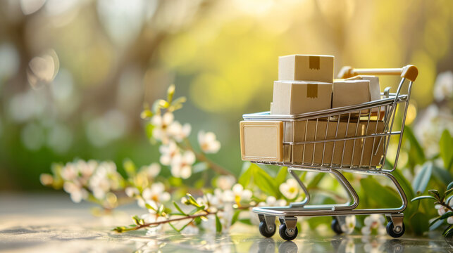 Online shopping cart representing the e-commerce sales, two digital mini shopping carts placed next to each other