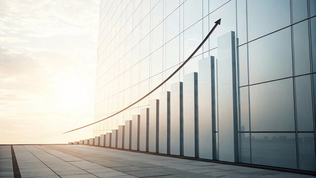 Modern abstract architecture, arrow up graph and a perspective walkway illuminated by light from a window
