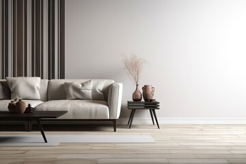 Comfortable Sofa with Copy Space on Wall for Advertisement in Living Room Interior Design