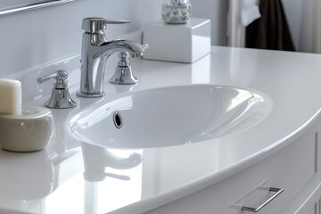 A modern bathroom with sleek design and high-quality fixtures, showing a serene, minimalist space