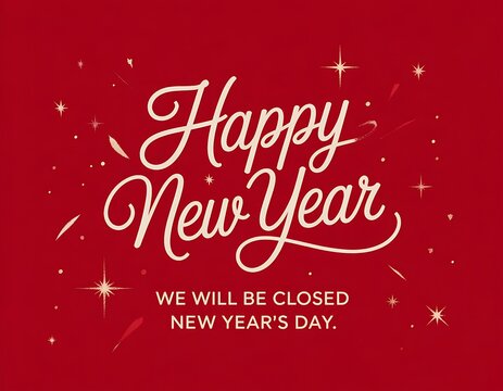 Elegant happy new year message with sparkling festive lights and announcement of closure on new year s day