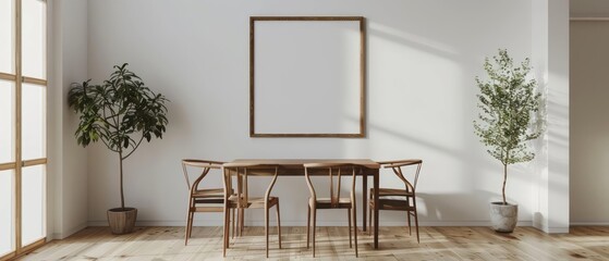 Minimalist dining set with empty wall frame display