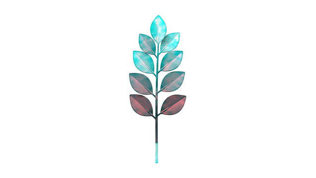 Teal leaf branch on a light grey background
