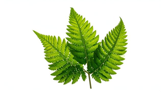 Close-up of vibrant green fern leaves isolated against a clean white background