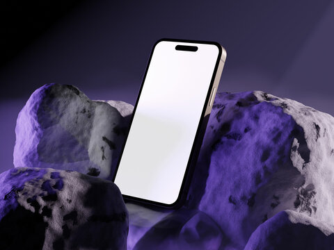 White Blank Phone Screen 3D Mockup in Dark Realistic Environment
