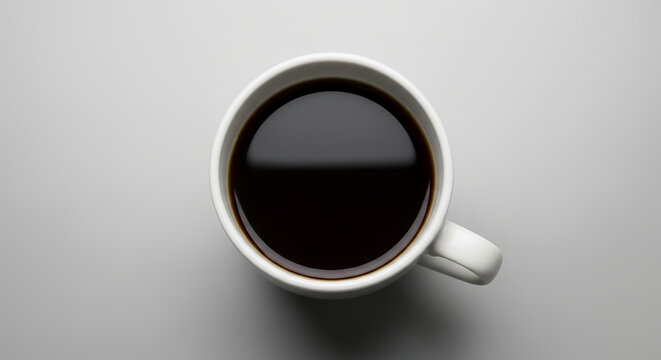 Overhead Shot of a Mug Filled with Dark Coffee Against a Black Background Simple Minimalist Coffee Photography