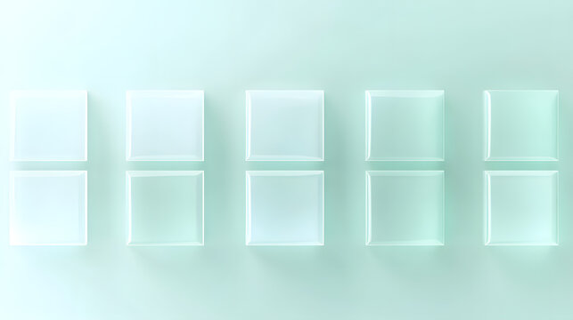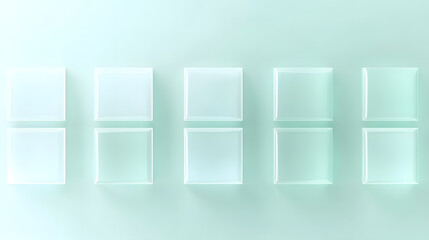 Row of translucent square panels arranged in a grid on a soft gradient background