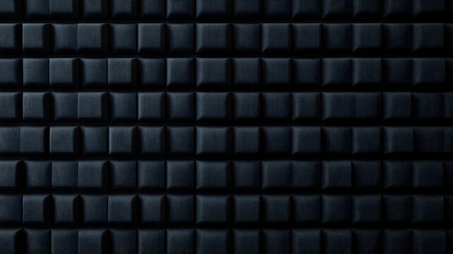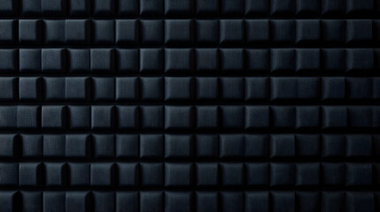 Minimalist black wall texture with dark acoustic foam panel pattern and soft shadow detail creating modern abstract background for interior studio or sound room design