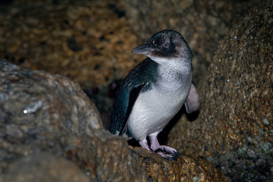 Little Penguin - Eudyptula minor - in maori korora, nocturnal returning to the coast to feed chicks in nests, Oamarau, New Zealand.