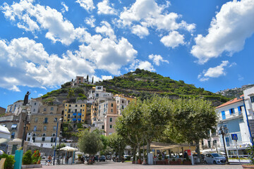 City ​​of minori seen from below, city located at the side of the coast and facing the sea.