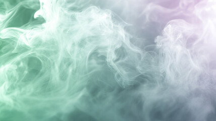 A tranquil background of soft lavender and mint green smoke, with subtle neon light casting a gentle, calming glow across the mist