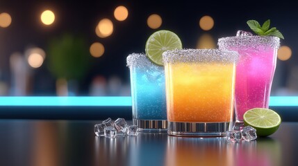 Peach cocktail with lime and mint garnish on bar counter, warm upscale nightlife ambiance