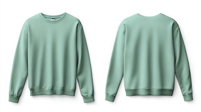 Set of mint green front and back view tee hoodie hoody sweatshirt on transparent background cutout, PNG file. Mockup template for artwork graphic design