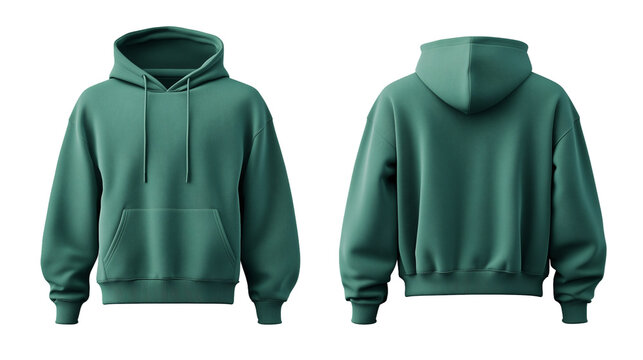 Light Teal Oversized Hoodie Mockup (Front and Back). Blank casual unisex hooded sweatshirt isolated on white background for custom apparel design template.