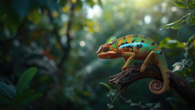 Chamaeleo zeylanicus on a branch showing color change, highlighting survival strategies, wildlife observation