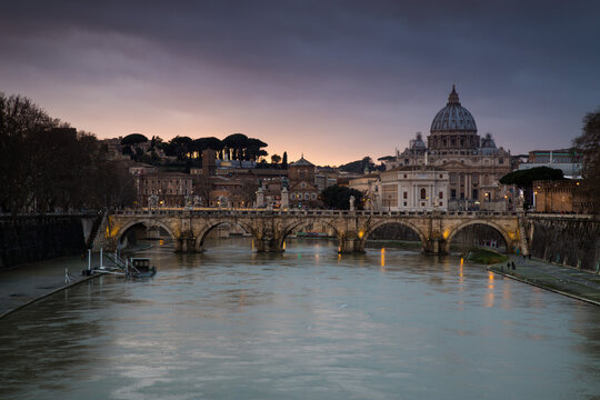 Brass convex dome reflecting historic european plaza and arched architecture at sunset