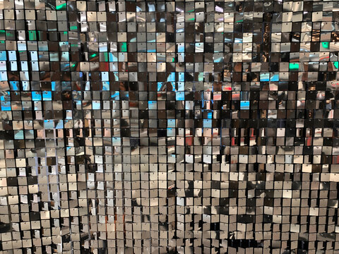 Silver Mosaic pattern of tiles.Wall is decorated with stained glass small plate ,Beautiful mosaic wall or ceramic wall for pattern background