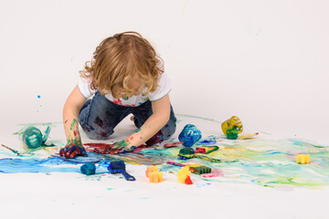 One upset child with feet on table while traveling by train. Mischievous small kid not behaving on moving transportation