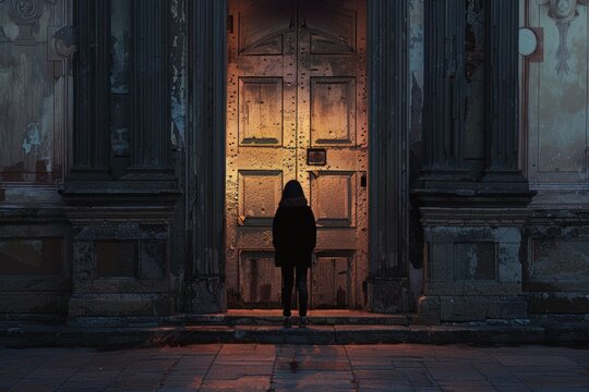 Closed Doors A person standing in front of a closed door, representing missed connections or opportunities