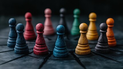 Explore how Innovation-Focused Leadership for Effective Collaboration shapes diverse teams to achieve shared goals Visualize strategic alignment with colorful game pieces arranged in a circle