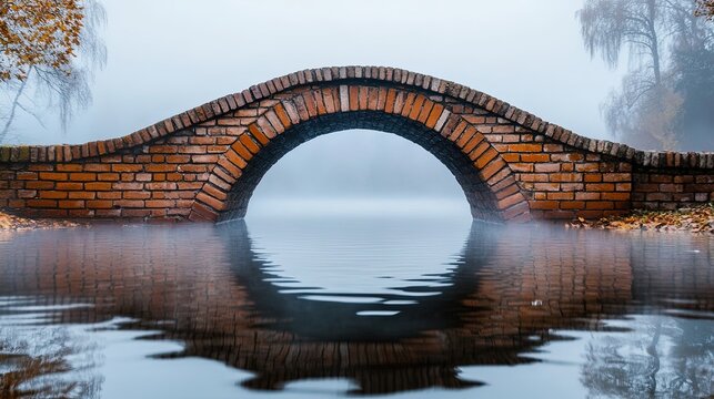 Serene courtyard filled with morning mist and symmetrical architecture