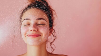 Ethereal rose-beige mist with geometric wireframe mesh forming abstract digital background