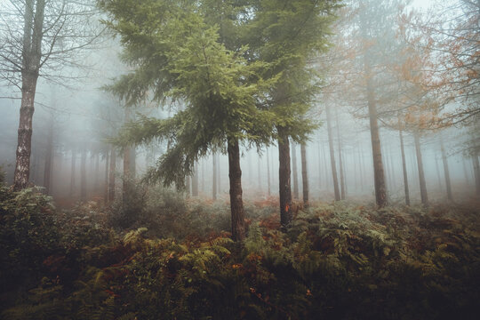 Foggy Otzarreta forest in Gorbea, Bizkaia