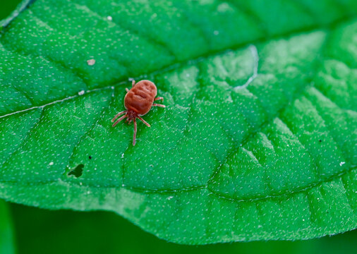 A dangerous parasite and infection carrier mite sitting on a green leaf