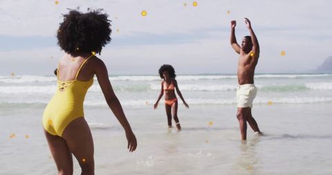 Happy couple kissing on beach with creative stars overlay