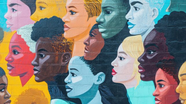 Colorful abstract watercolor painting of diverse silhouettes showcasing unity and diversity in a vibrant artistic expression of human connection