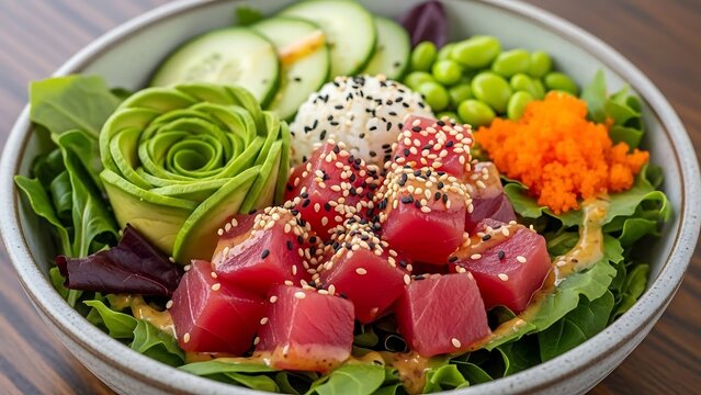 Tuna Poke Bowl with Mixed Greens.
