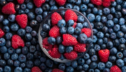 strawberries, raspberries, blueberries and blackberries on a white isolated background