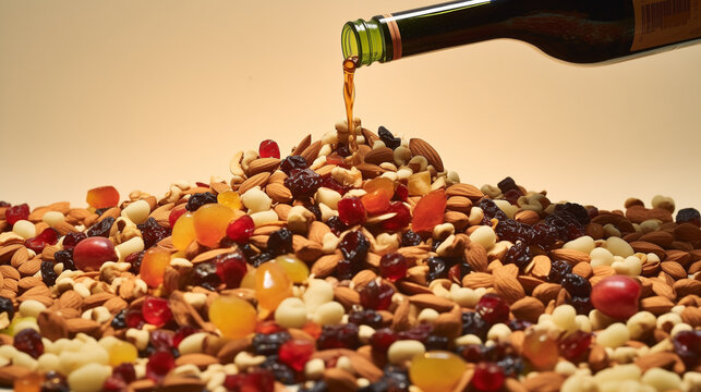 Cozy rustic kitchen baking scene: woman pouring milk into mixing bowl for homemade cake