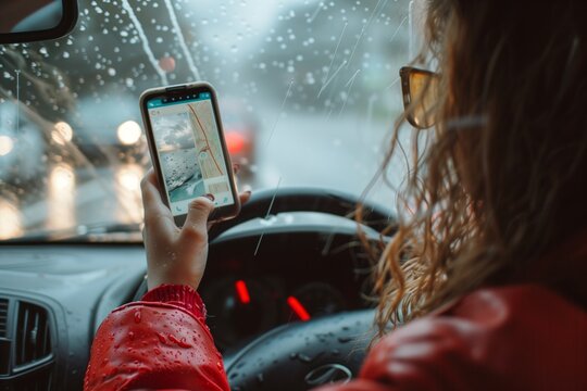 Woman outdoors checking the weather forecast on an app on her mobile phone.