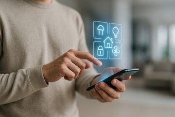 Person using smartphone with digital onboarding process icons and text, representing new employee integration and business development