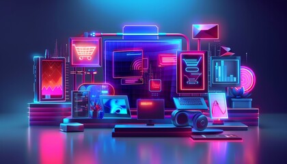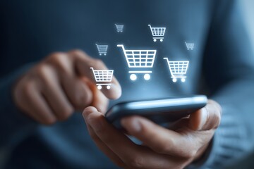 Online shopping, holographic product catalog, futuristic interface, modern design
